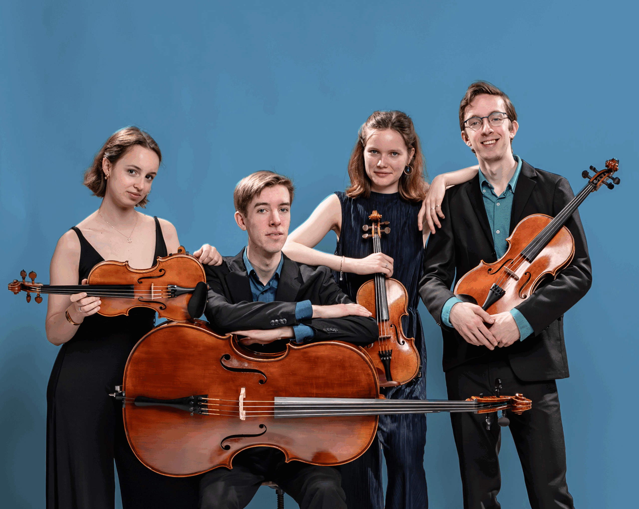 The Silhouet Quartet, a vibrant Dutch string quartet based in The Hague, has been captivating audiences with their energetic stage-presence and extensive repetoire choice since their formation in 2021. Now studying under guidance of Janet Krause at the Royal Conservatory in The Hague, they have been coached by the illustrious Cuarteto Casals and have participated in masterclasses with renowned quartets and musicians.