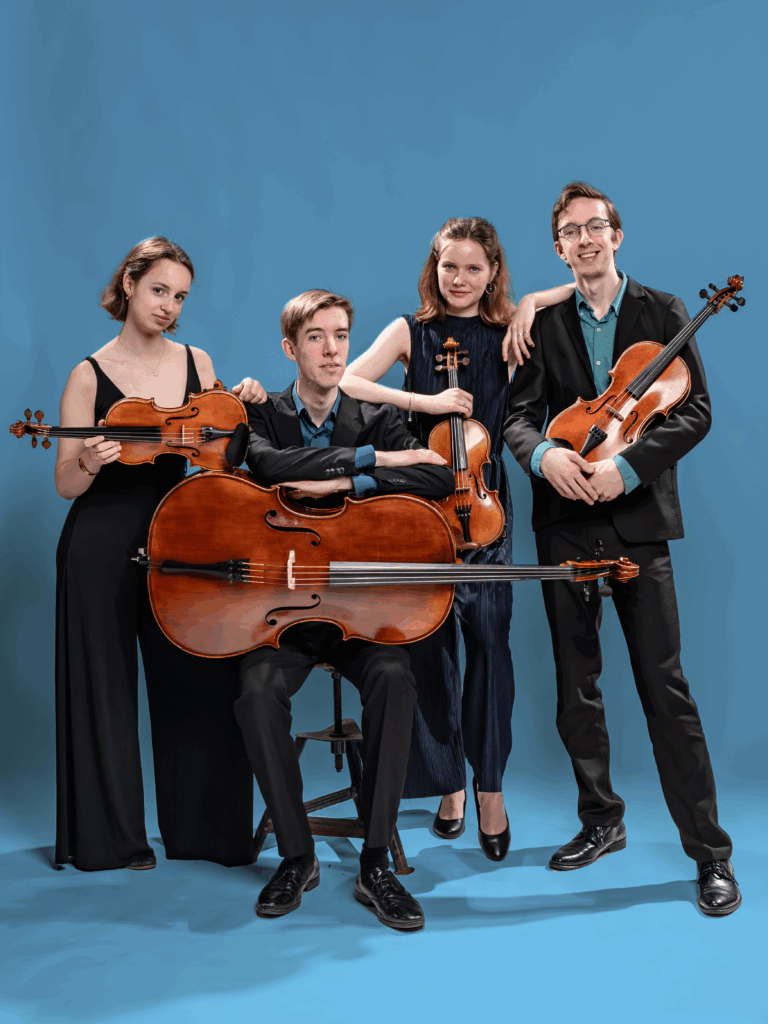 The Silhouet Quartet, a vibrant Dutch string quartet based in The Hague, has been captivating audiences with their energetic stage-presence and extensive repetoire choice since their formation in 2021. Now studying under guidance of Janet Krause at the Royal Conservatory in The Hague, they have been coached by the illustrious Cuarteto Casals and have participated in masterclasses with renowned quartets and musicians.